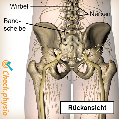 Die Begriffe 'Ischias' und 'Bandscheibenvorfall' werden häufig synonym verwendet. Ischias ist der Nervenschmerz im Rücken, bei dem der Ischiasnerv (der Ischiadicus) betroffen ist. Dies führt zu einem ausstrahlenden Schmerz ins Bein. Dieser Nervenschmerz wird oft durch einen Bandscheibenvorfall (vorwölbende Bandscheibe) verursacht, kann aber auch andere Ursachen haben.